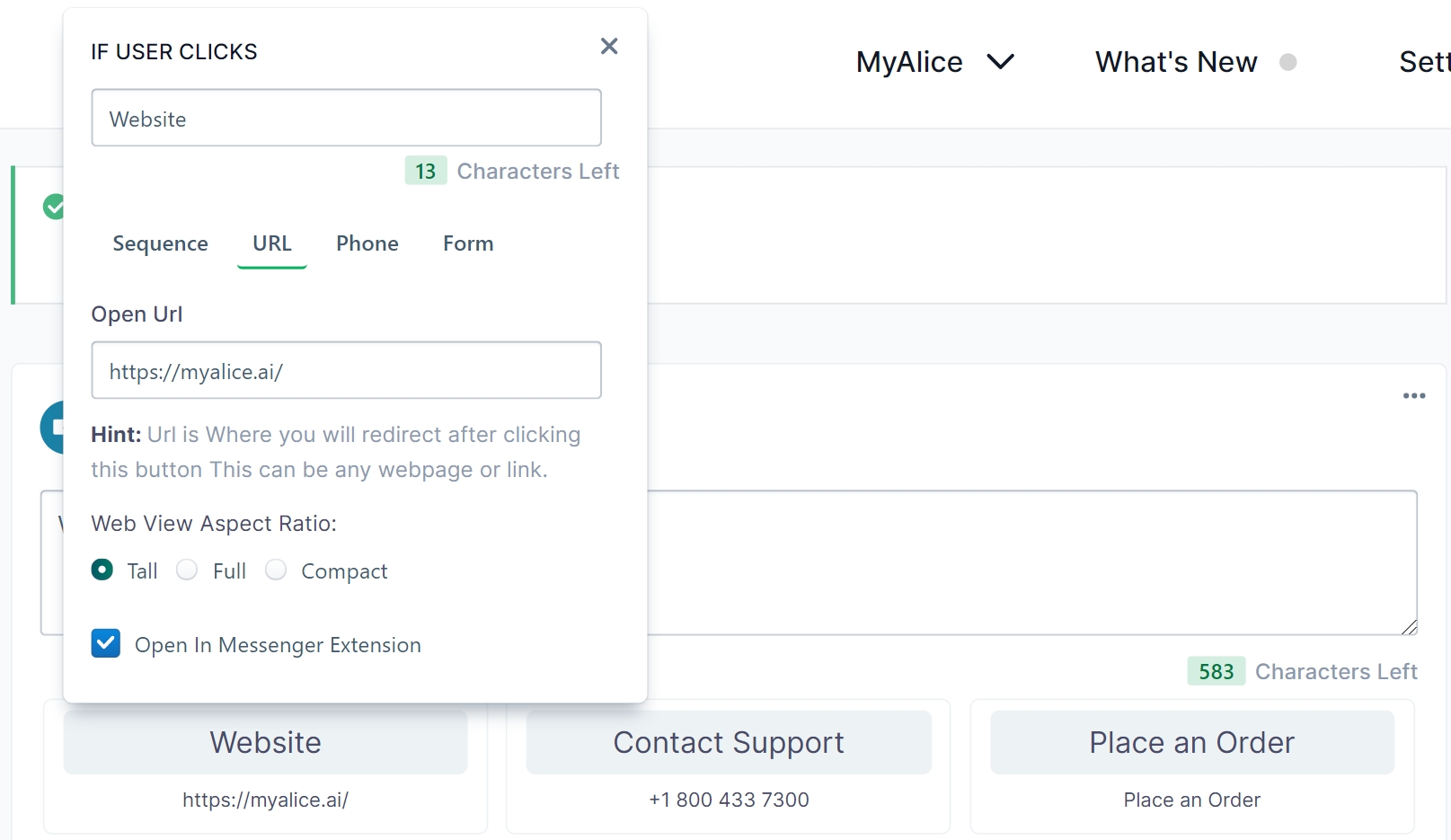 Suppose we want to showcase the most frequent links and resources in a click-worthy format. We have already shown many instances where we redirect our users to a new sequence. This time, we are focusing on redirecting users to URL, phone, or forms.