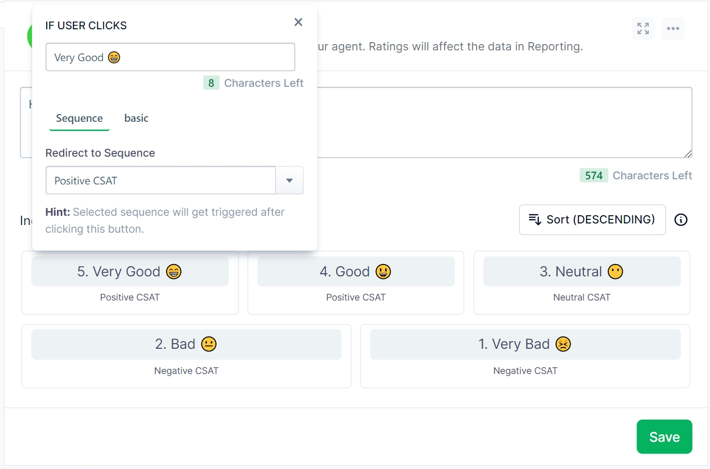 3. Next, add a CSAT Block in your CSAT Sequence and rename the buttons as you like.