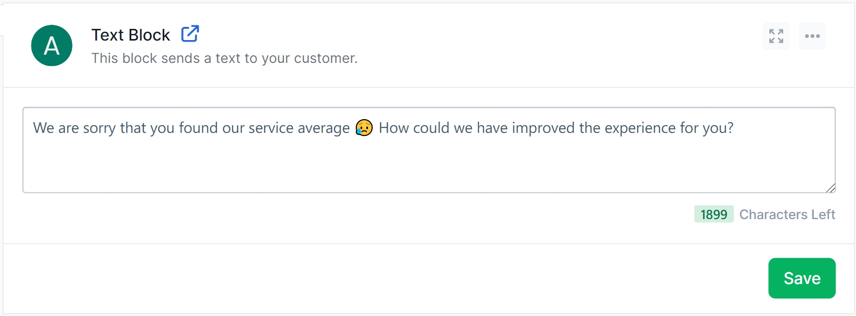You'll usually use the CSAT block to collect customer satisfaction reports or to rate agents' performance. But you can also create custom journeys based on positive or negative responses.