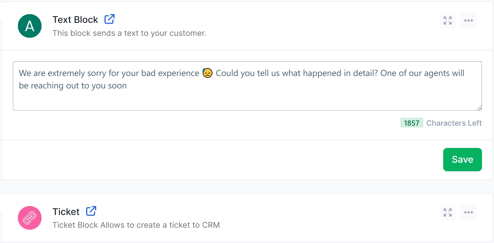 It is a good practice to trigger a CSAT block after every time a ticket is resolved. To do so —