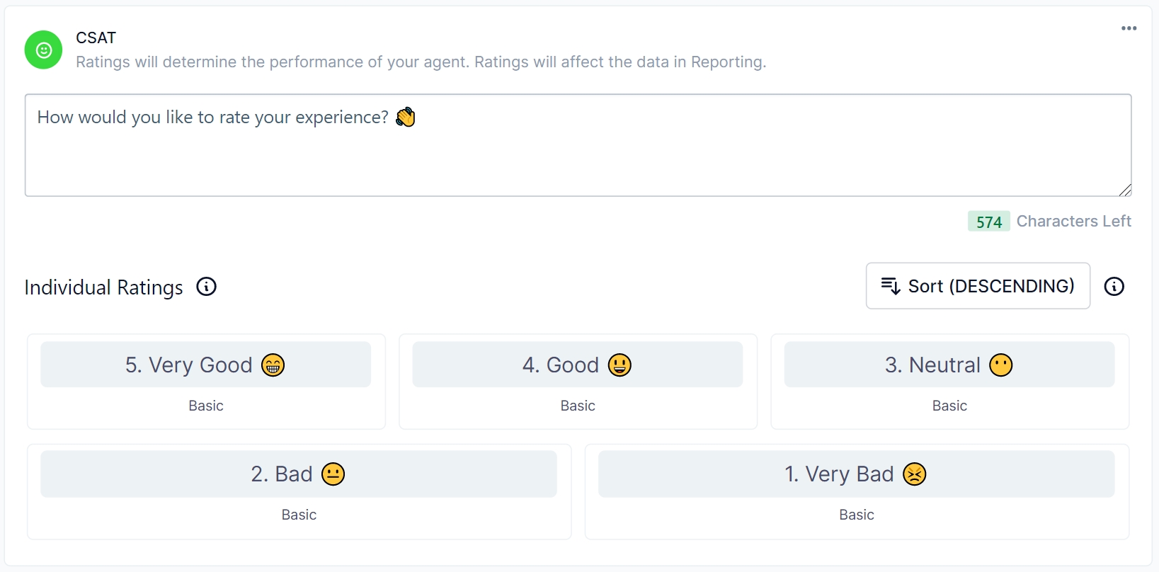 CSAT stands for Customer Satisfaction. The CSAT block is used to collect quantitative user feedback on a scale of 1-5.