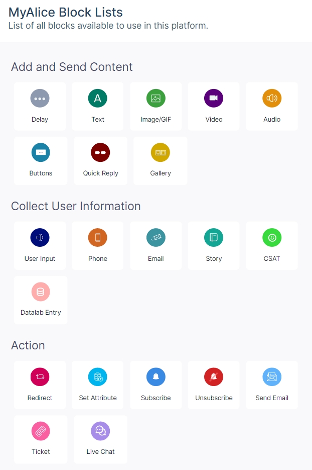 Add and Send Content BlocksCollect User Information BlocksAction BlocksWas this helpful?