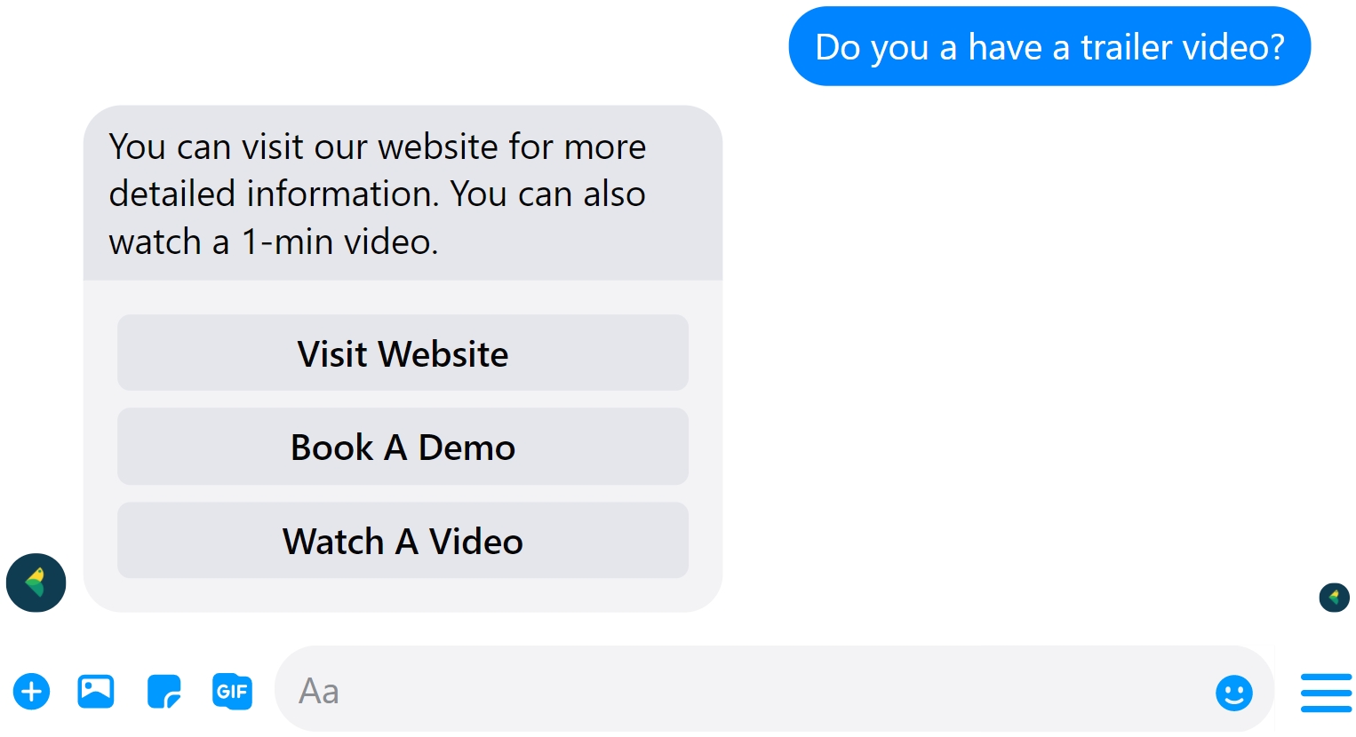 Quick Reply blocks can appear as answer suggestions for visitors. They can help a customer decide/reply faster. They are not directly attached to the message; instead, they float above the keyboard.