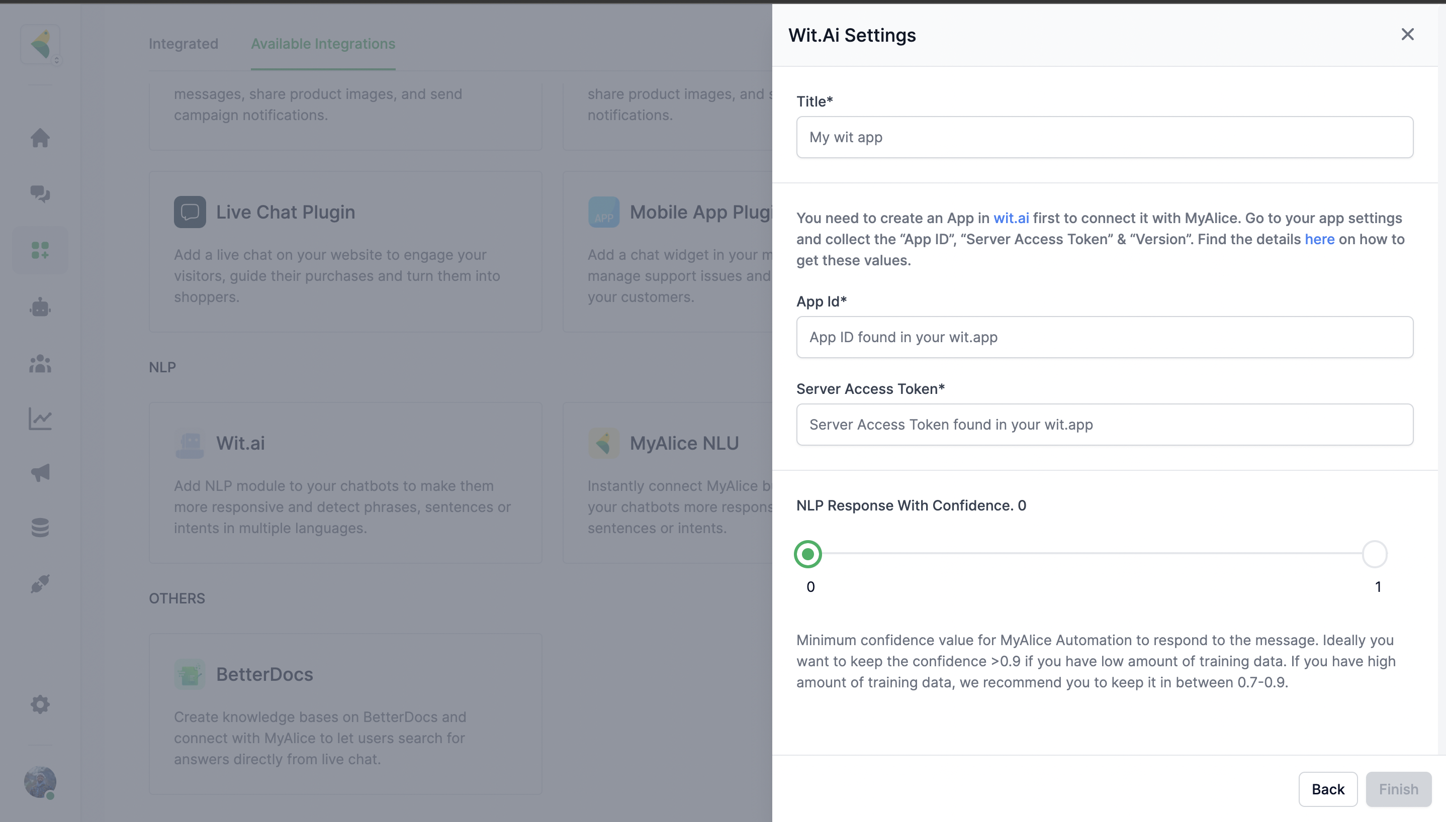 2. Under **Available Integrations > NLP**, select **Wit.ai**.