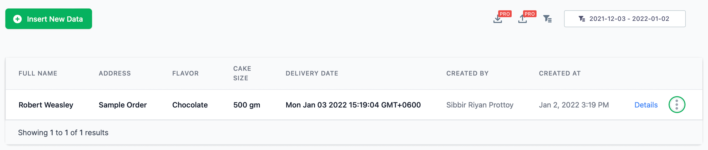 1. Now click on Insert New Data. You will find a pop-up of your form.