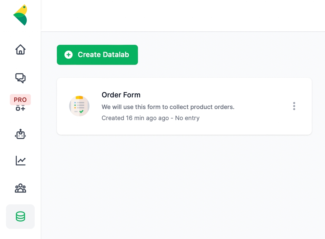 Now, click on the Datalab icon on the left panel and you will find a new form.