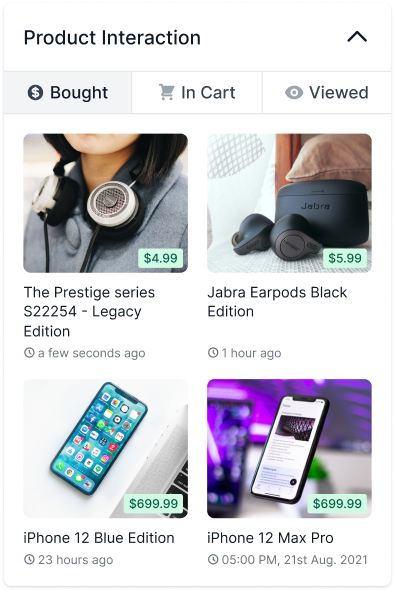 The Product Interaction section in Inbox contains data on which products the customer has interacted with. We can categorize interactions on three tiers.