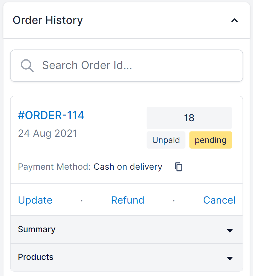 You can track your past orders, billing/shipping address, detailed invoices, and order details from the Order History Section. You can also search by order IDs and update, refund, or cancel an order.