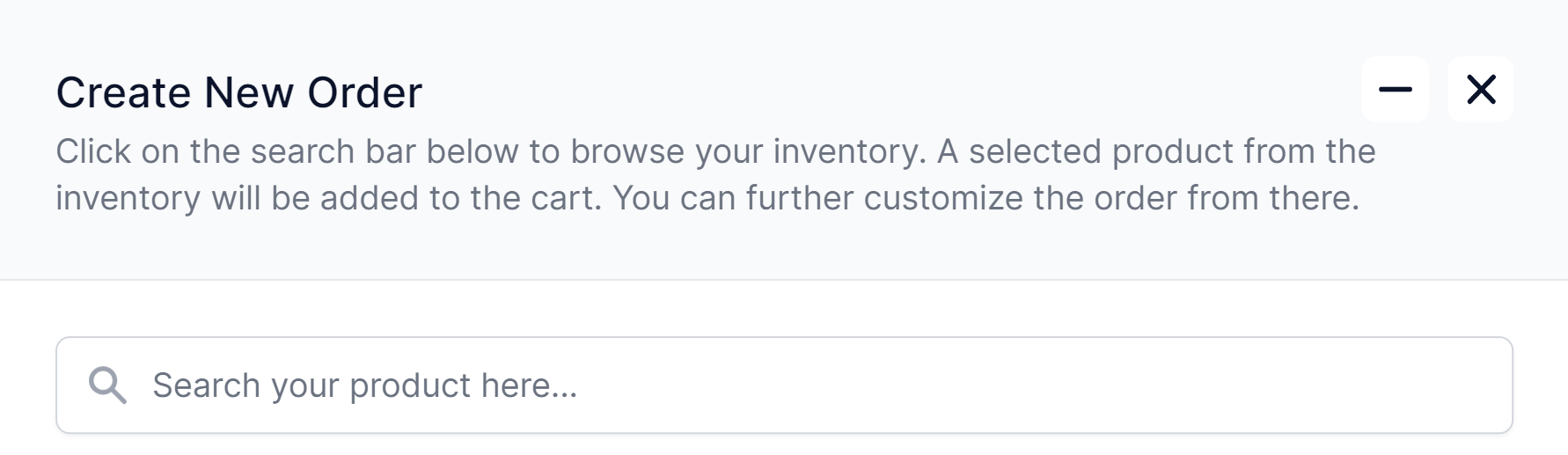 At any point in creating the order, if you need to respond to another customer or you want to save your ongoing order, click on the Minimize icon โ on top of the pop-up.