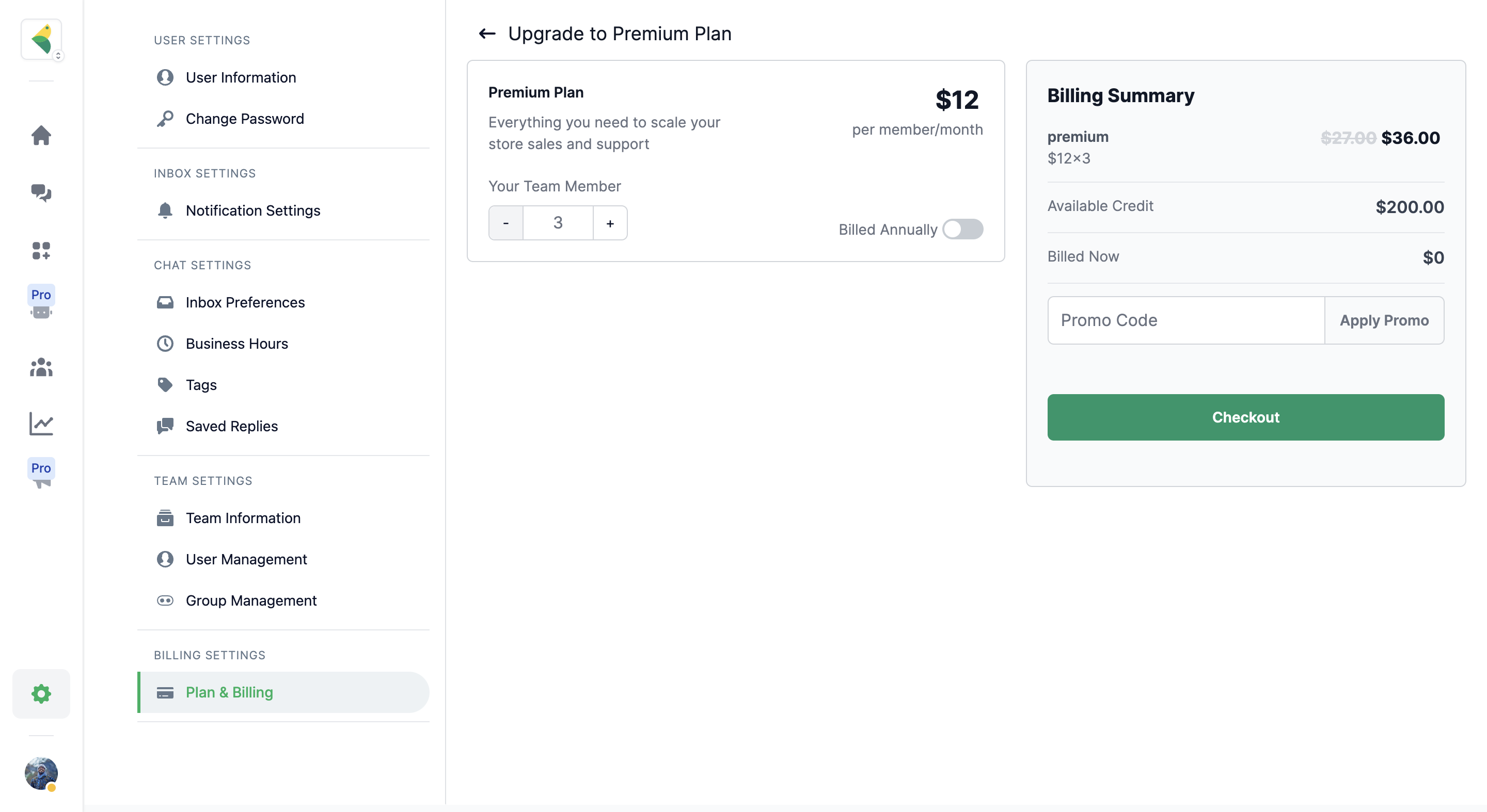 3. Now click on 'Upgrade' under the Premium plan. You'll land on our Checkout page.
