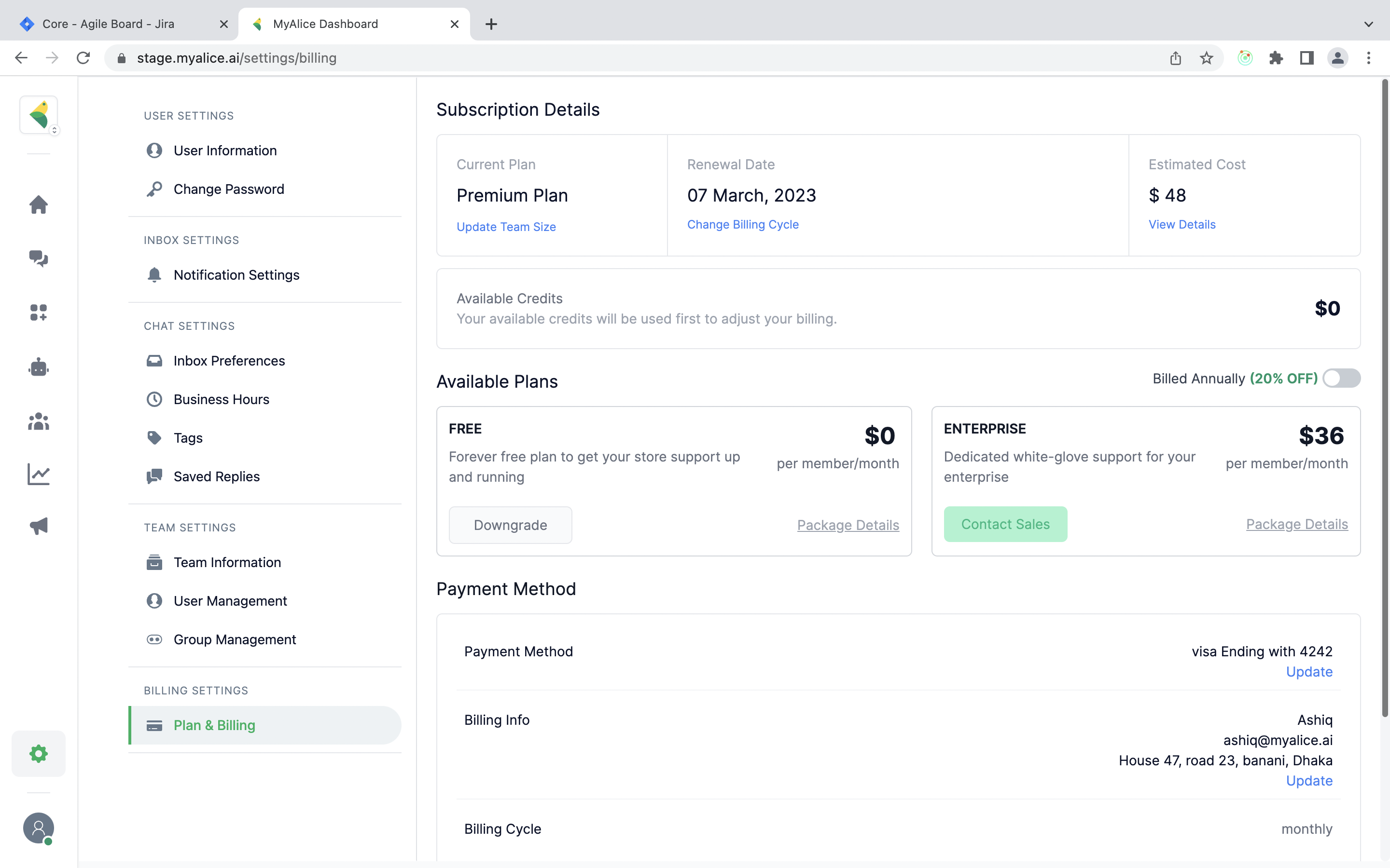 2. Click on 'Downgrade' under the Free plan. For Enterprise plan users, contact your dedicated Success Manager.&#x20;