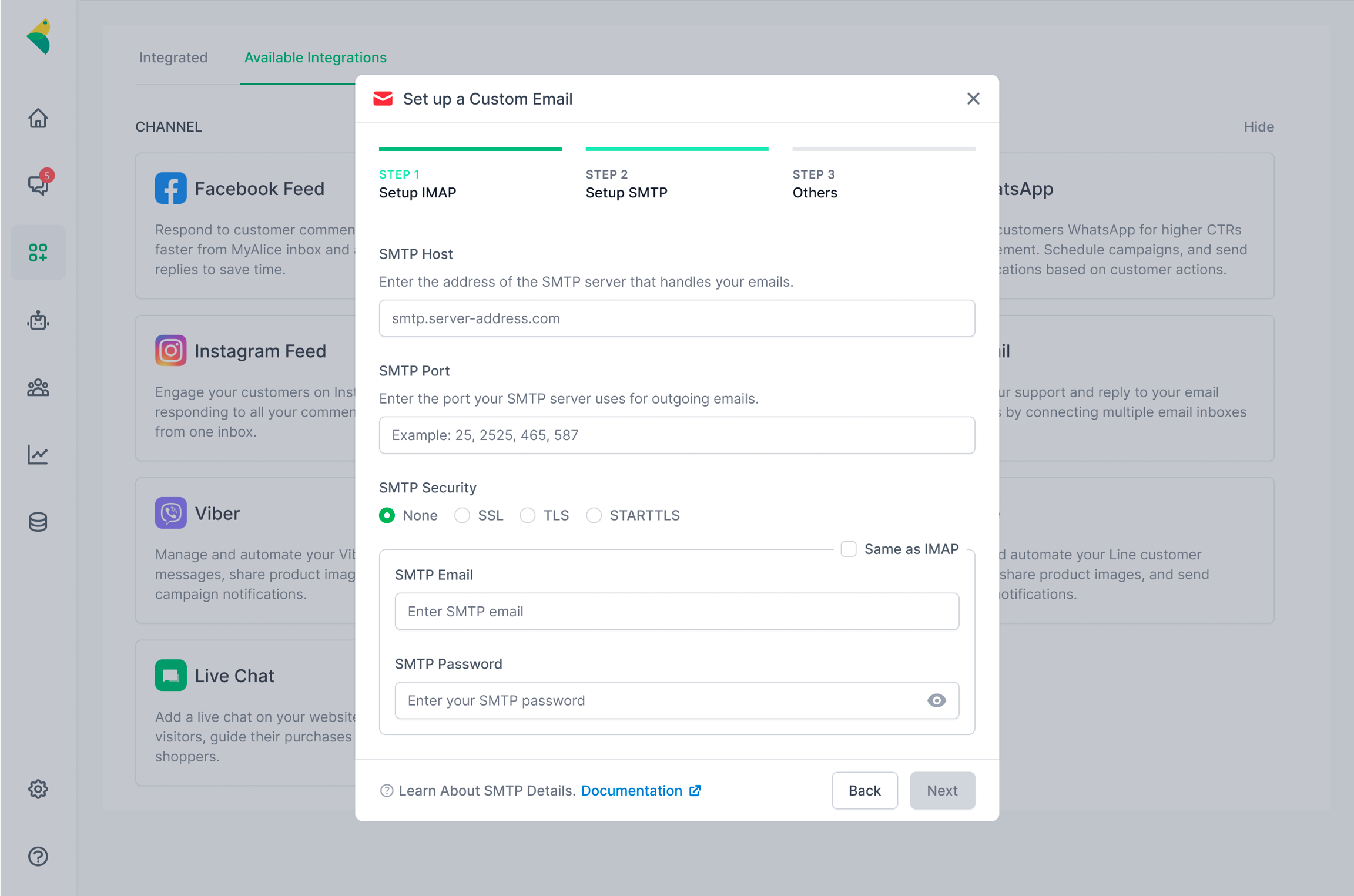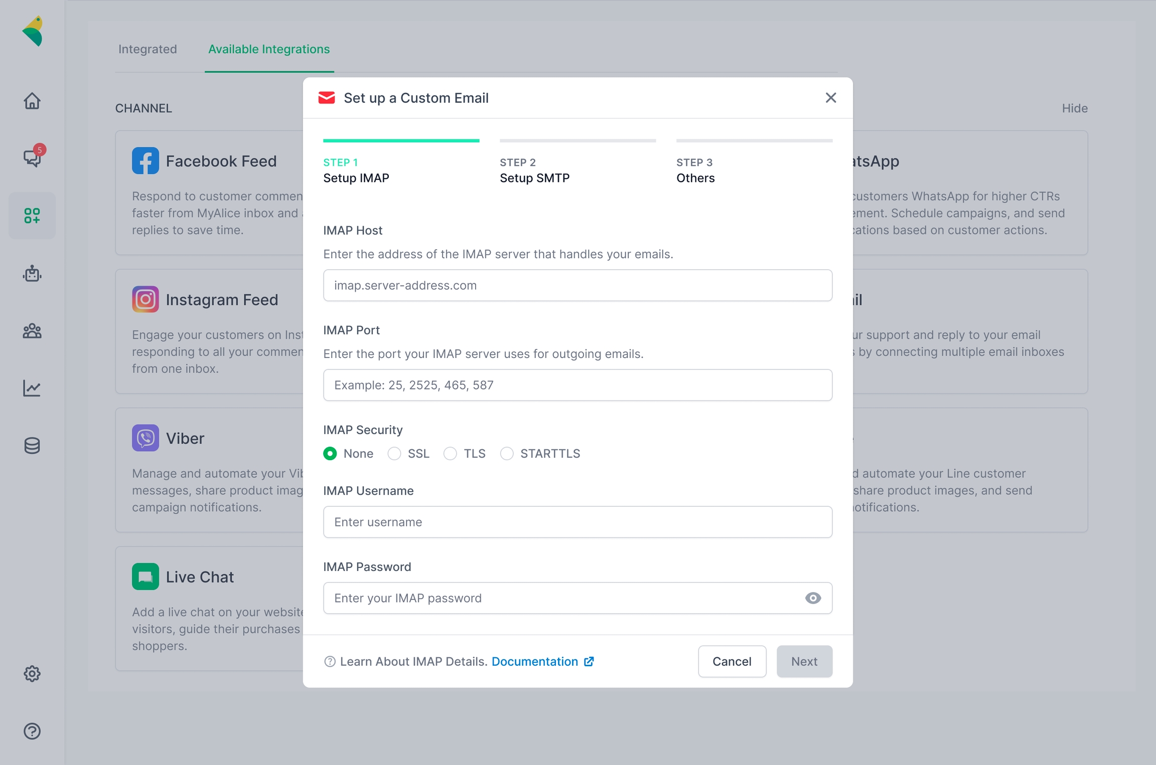 Click on Set up a Custom Email. Email Setup window will open. Here, give your IMAP details.
