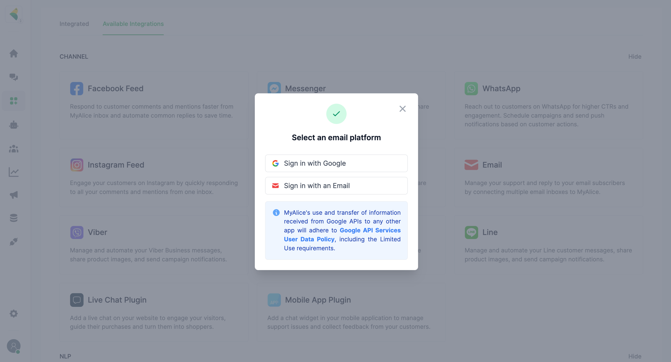 You will receive a success message if your data is correct. Congrats! you have setup an email channel.