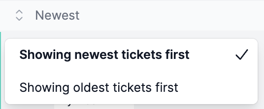 افتراضيًا، يظهر عرض صندوق الوارد أحدث تذكرة في الأعلى. يمكنك النقر على أيقونة الأحدث للتبديل بين آخر وأقدم عرض