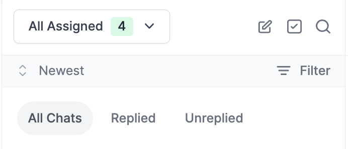 يمكنك التبديل بين المعينة كلها وغير المعينة والمغلقة كلها والبوت والمعينة لي والمغلقة لي. سترى التذاكر المعينة في صندوق الوارد الخاص بك افتراضيًا