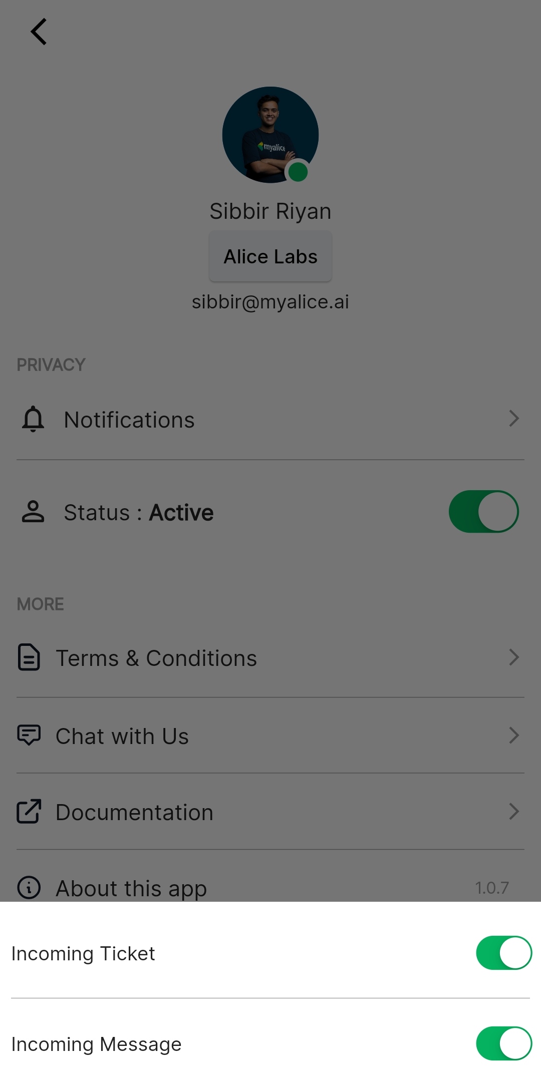 3. Click on **Notifications** and turn on the toggles for incoming messages and new tickets.